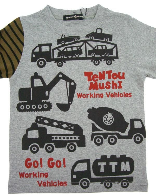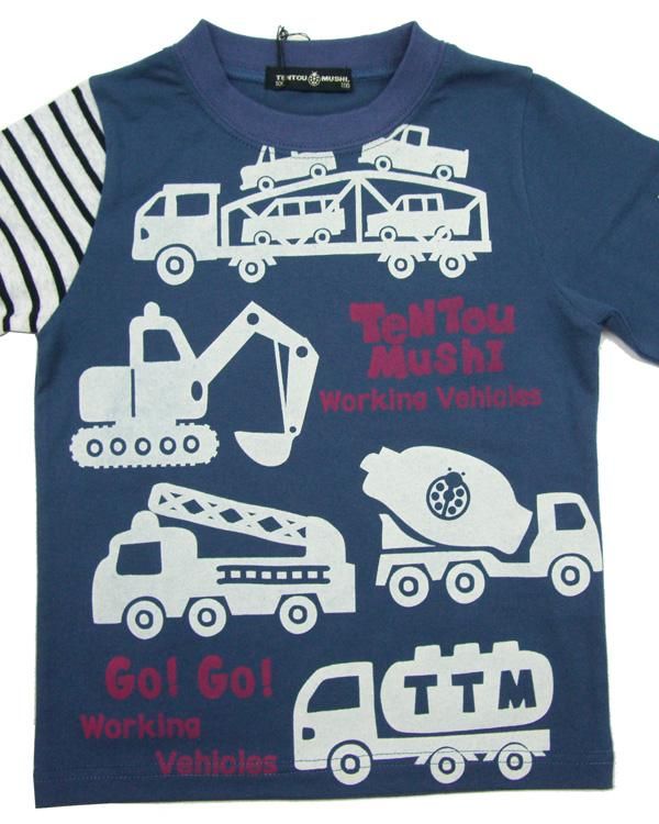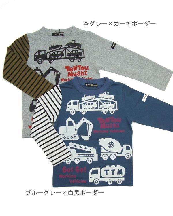 綿天竺・はたらく車プリント・長袖Tシャツ